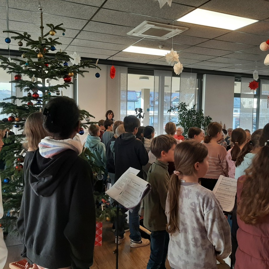 Die Schülerinnen und Schüler hatten im Vorfeld mit ihrer Lehrerin fleißig geübt und präsentierten verschiedene Herbst- und Weihnachtslieder mit Gesang sowie mit Instrumenten wie Blockflöten und dem Glockenspiel.